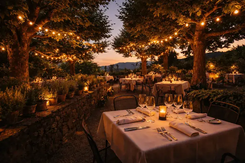 Die Terrasse ist unser Lieblingsplatz im Sommer. Warme Lichterketten, der Duft von Kräutern und ein Glas Vermentino — so schmeckt Zürich nach Italien.